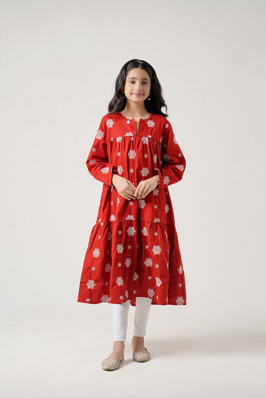 Embroidered Red Shirt with Printed Trouser