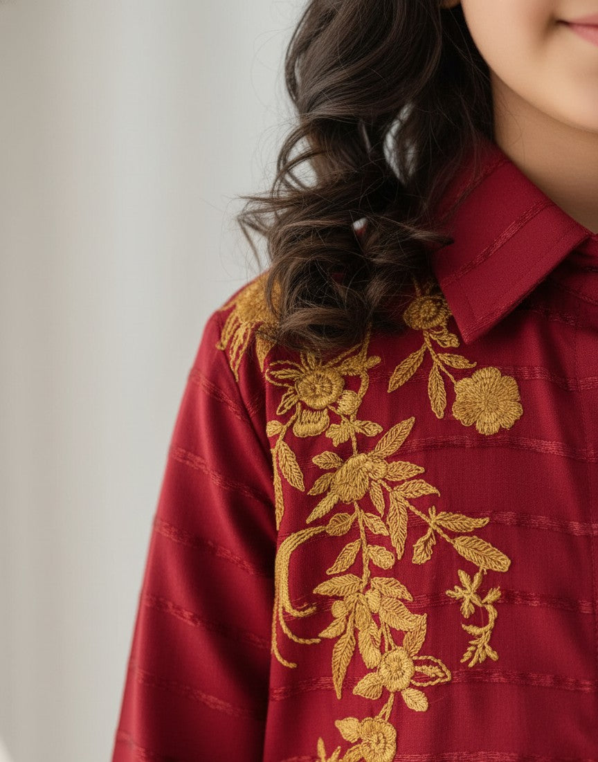 # 2-Piece Embroidered Dress - Winter Collection Crafted for the season, this two-piece embroidered dress combines traditional artistry with contemporary winter styling. The intricate embroidery detailing adds sophistication to your seasonal wardrobe, while the structured two-piece silhouette offers versatility for layering and styling options. Premium fabric construction ensures durability and comfort through colder months.